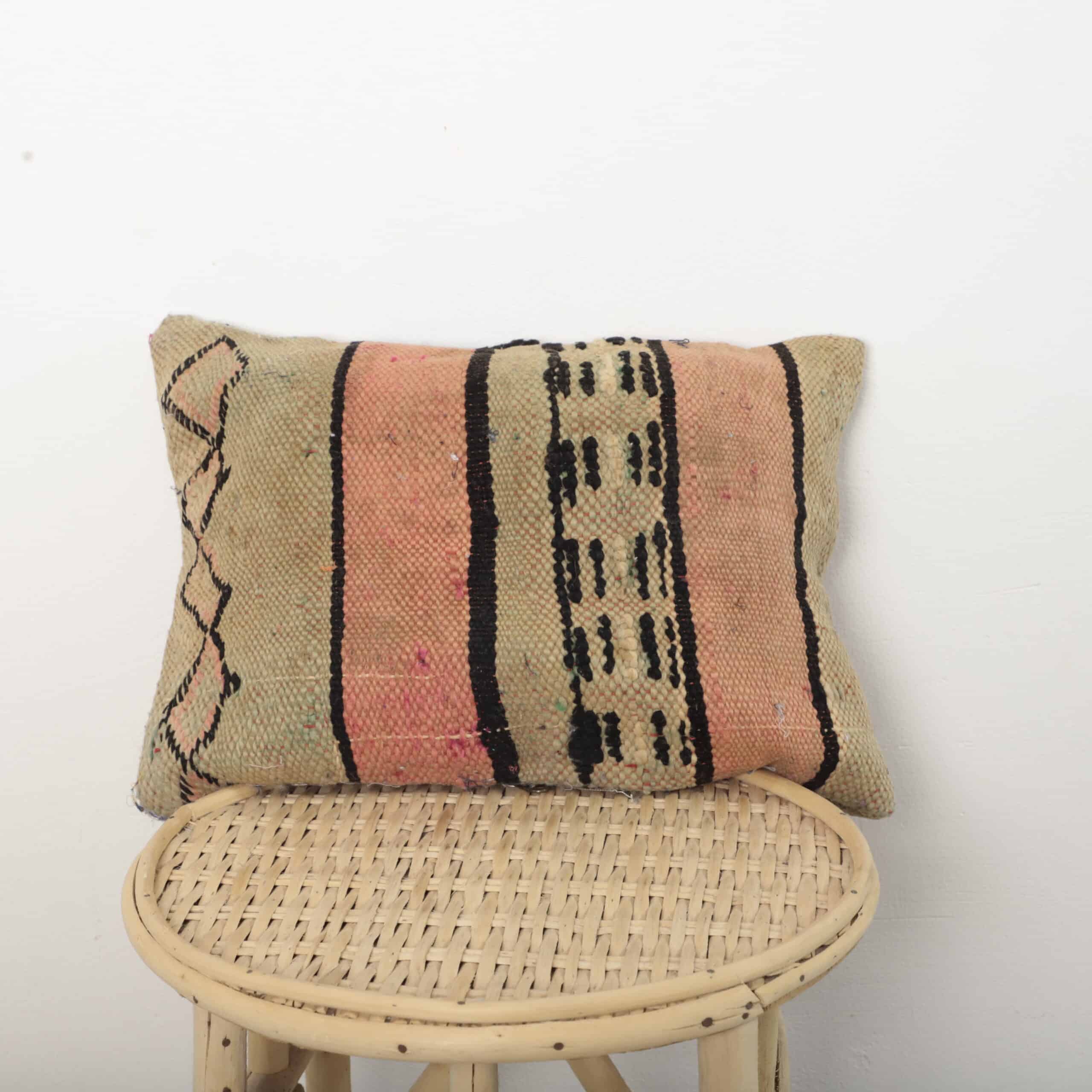 Featuring warm earthy beige and soft blush tones accented with black tribal motifs, this Moroccan cushion blends seamlessly with boho, neutral, rustic, and modern interiors. Its versatile size makes it ideal as a sofa accent or decorative bed pillow.