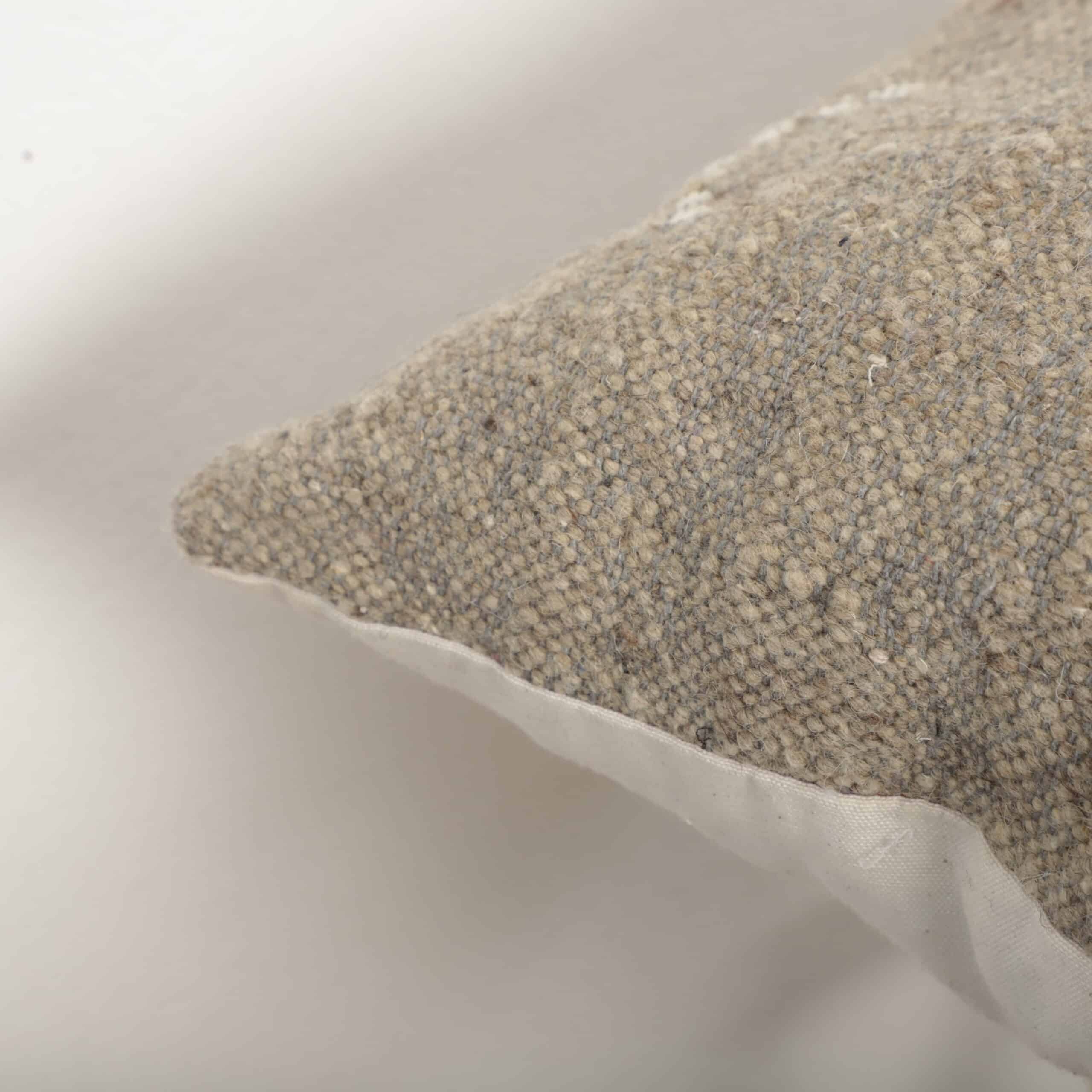 This handmade Moroccan cushion features a balanced lumbar shape, making it ideal for sofas, beds, or lounge seating. Its soft neutral palette blends effortlessly with modern, Scandinavian, boho, and ethnic interiors.