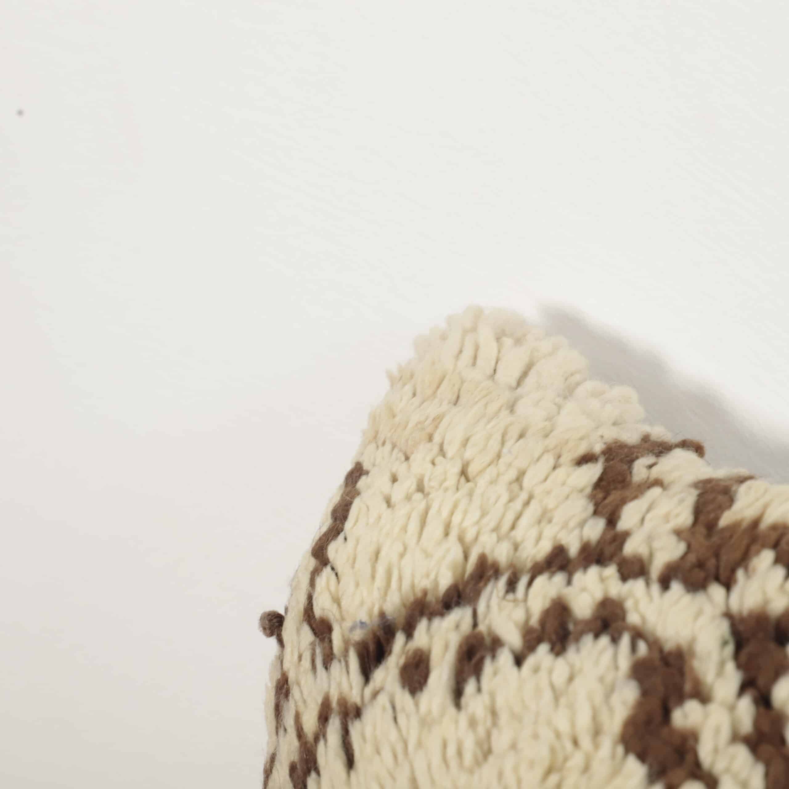 Handmade Moroccan Beni Ourain pillow crafted from soft wool. Features traditional Berber geometric patterns in neutral tones.