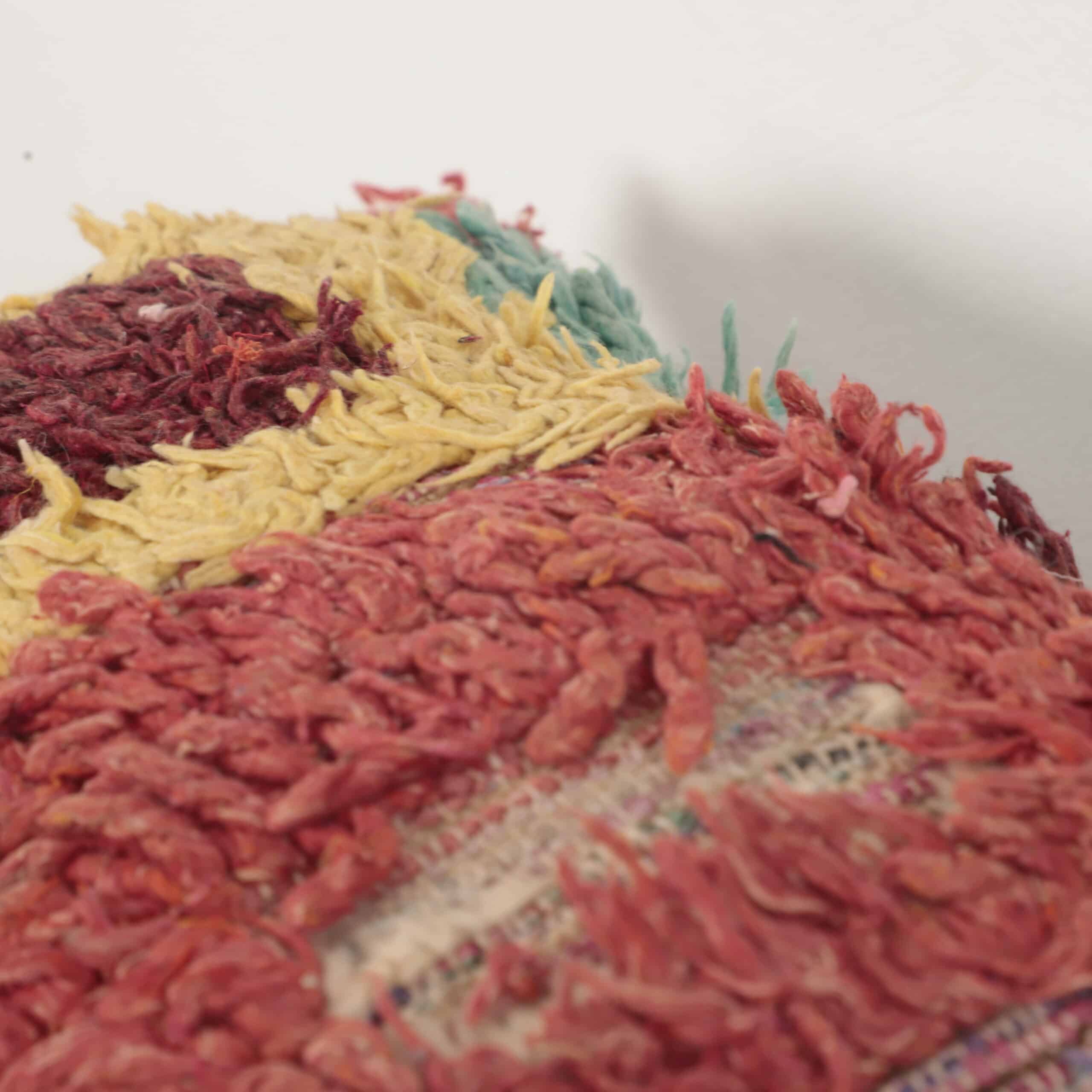 Traditional Moroccan boucherouite textile (woven recycled fabric + shag texture).