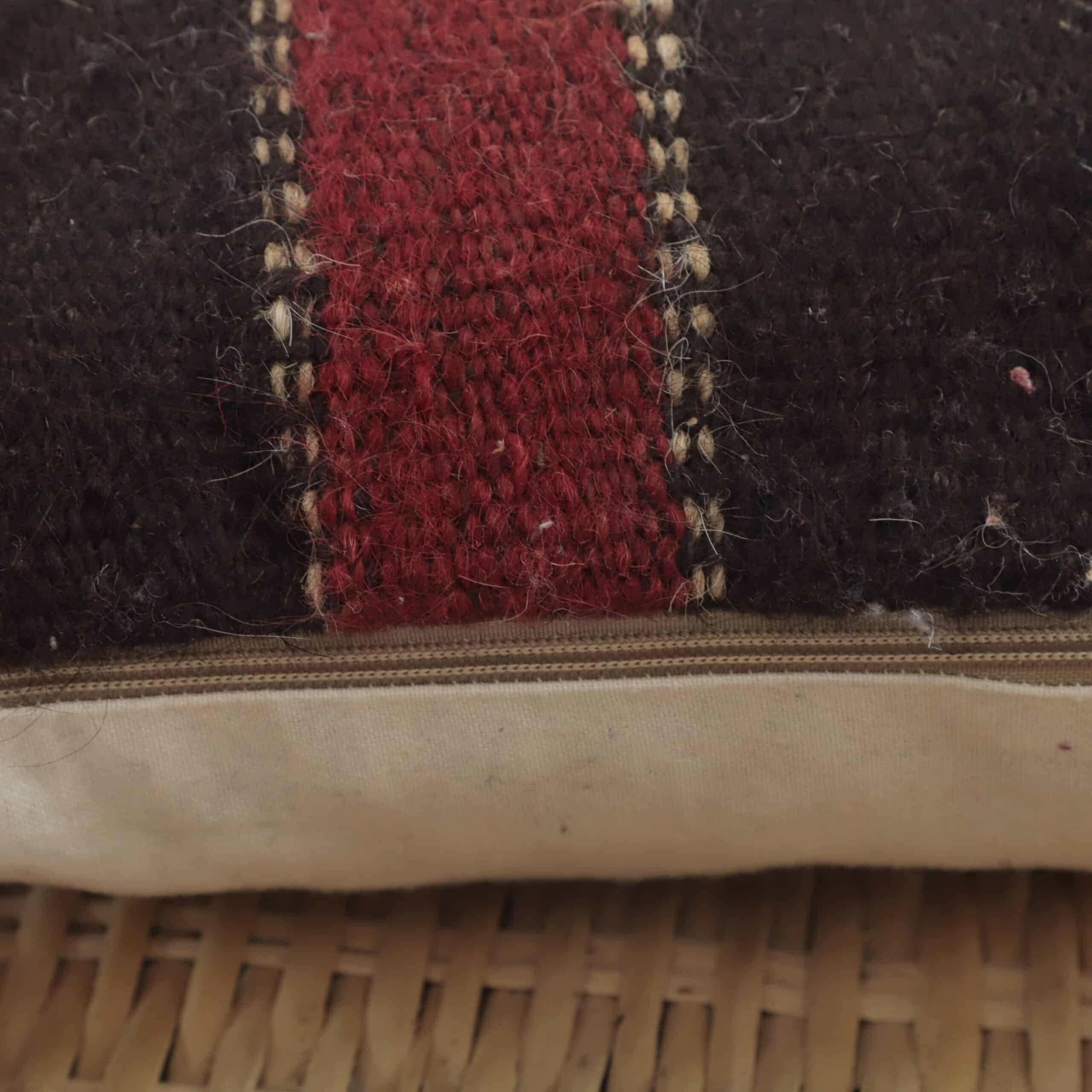 Moroccan Dark Striped Kilim Pillow 42×37 cm | Handmade Wool Cushion