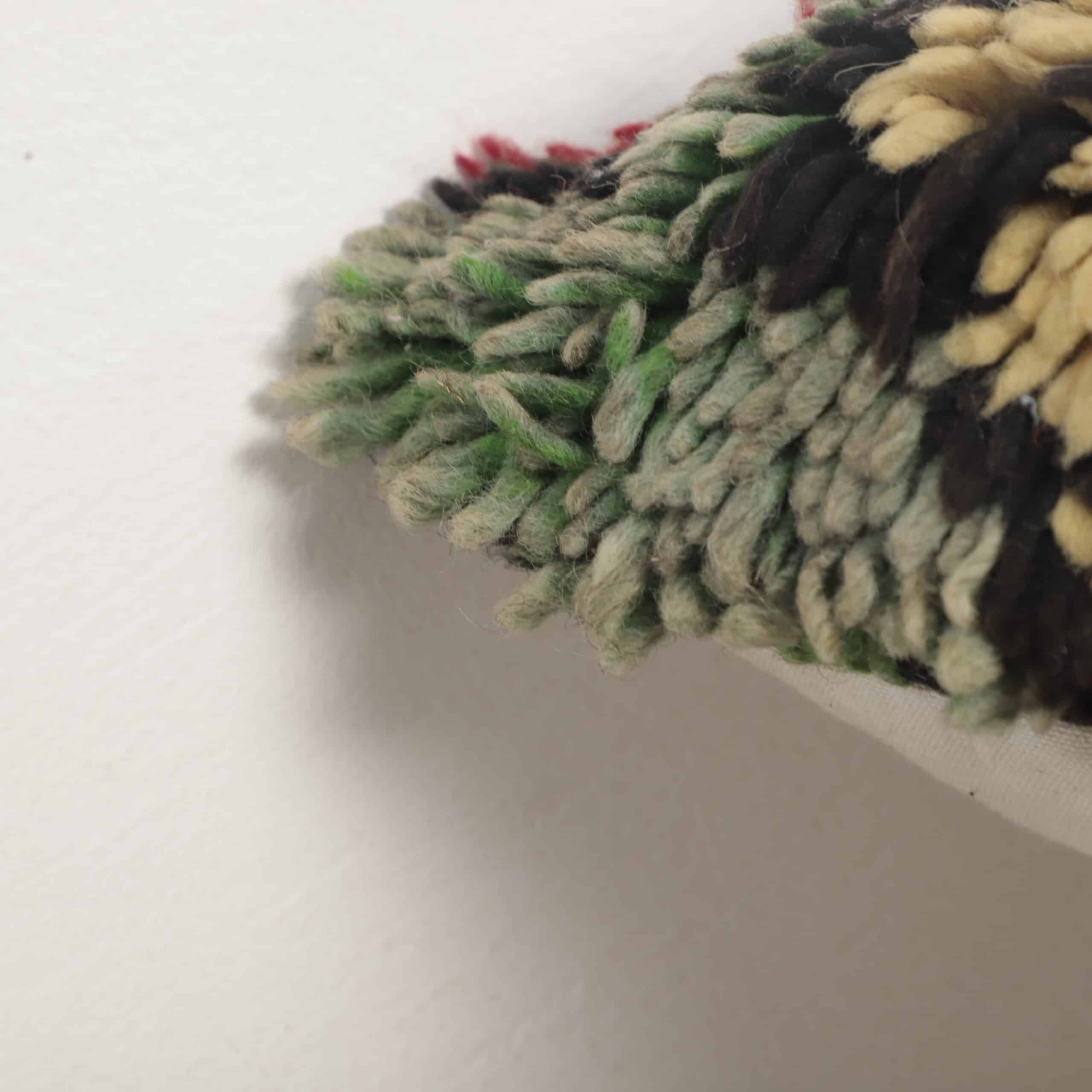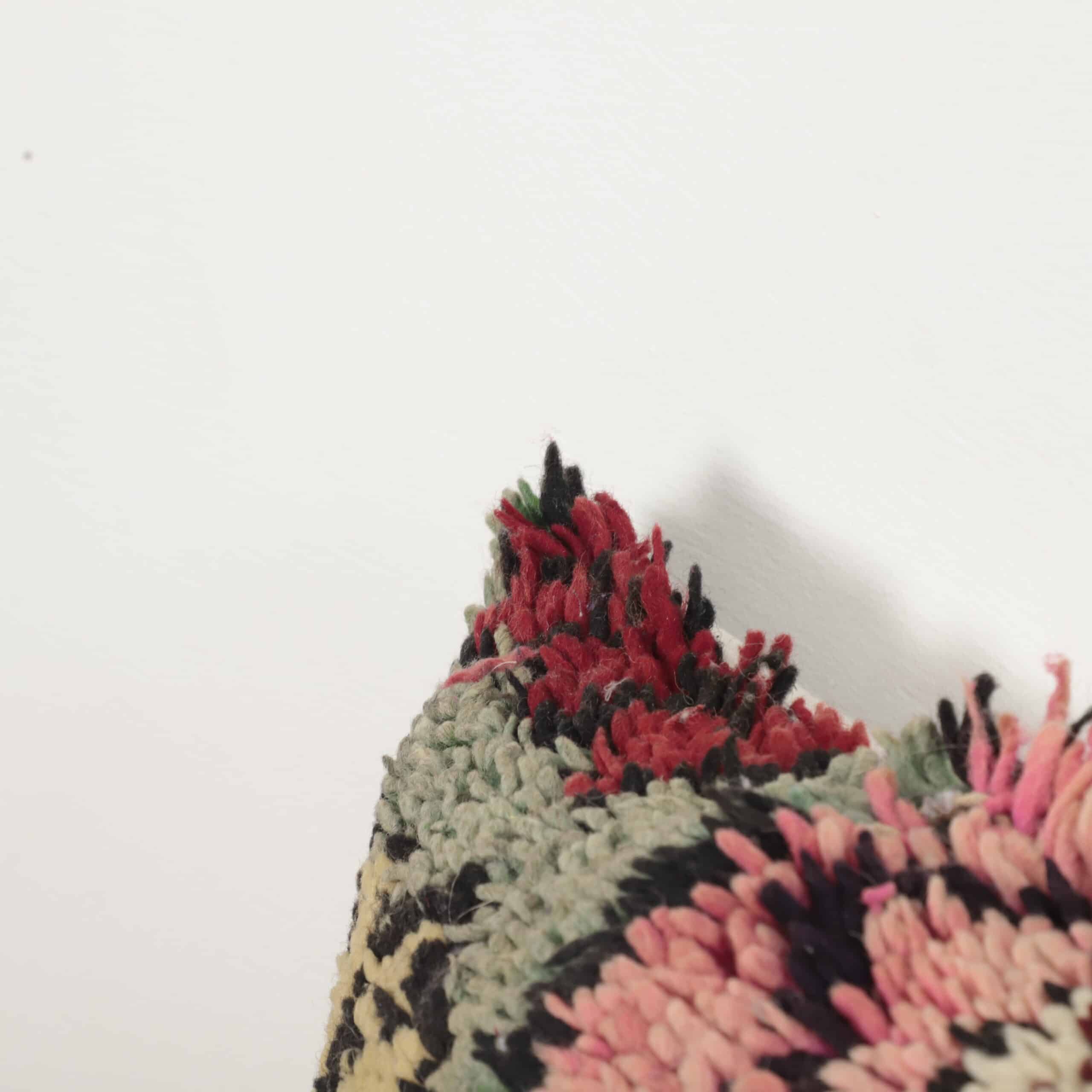 Handmade Moroccan high pile pillow crafted from thick Berber wool. Rich texture and vibrant tribal patterns make it a bold accent for sofas or beds.
