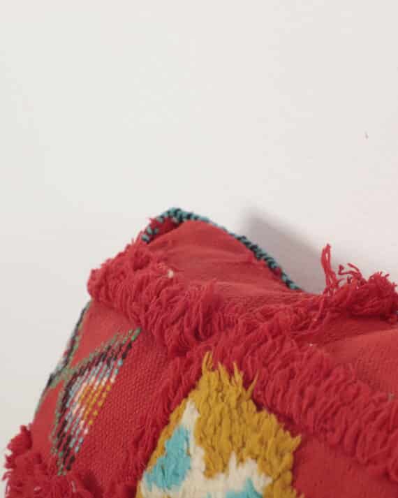 This rust Moroccan kilim pillow is handcrafted from authentic Berber woven textile, featuring rich rust, terracotta, and subtle multicolor accents. Its textured surface and earthy palette reflect the natural dyes and traditional weaving techniques used in Moroccan kilim craftsmanship.