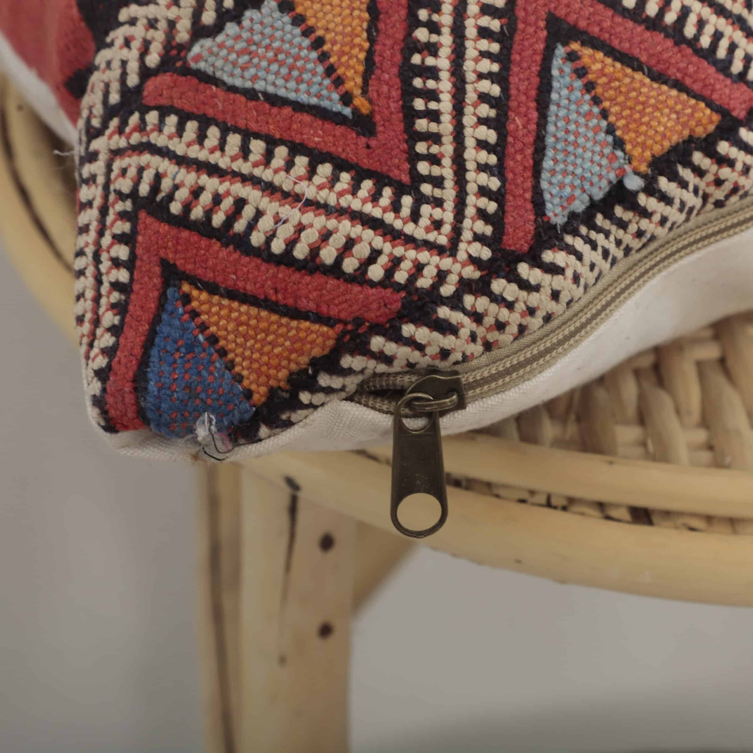 Moroccan V Pattern Kilim Pillow 45×44 cm | Handmade Berber Cushion