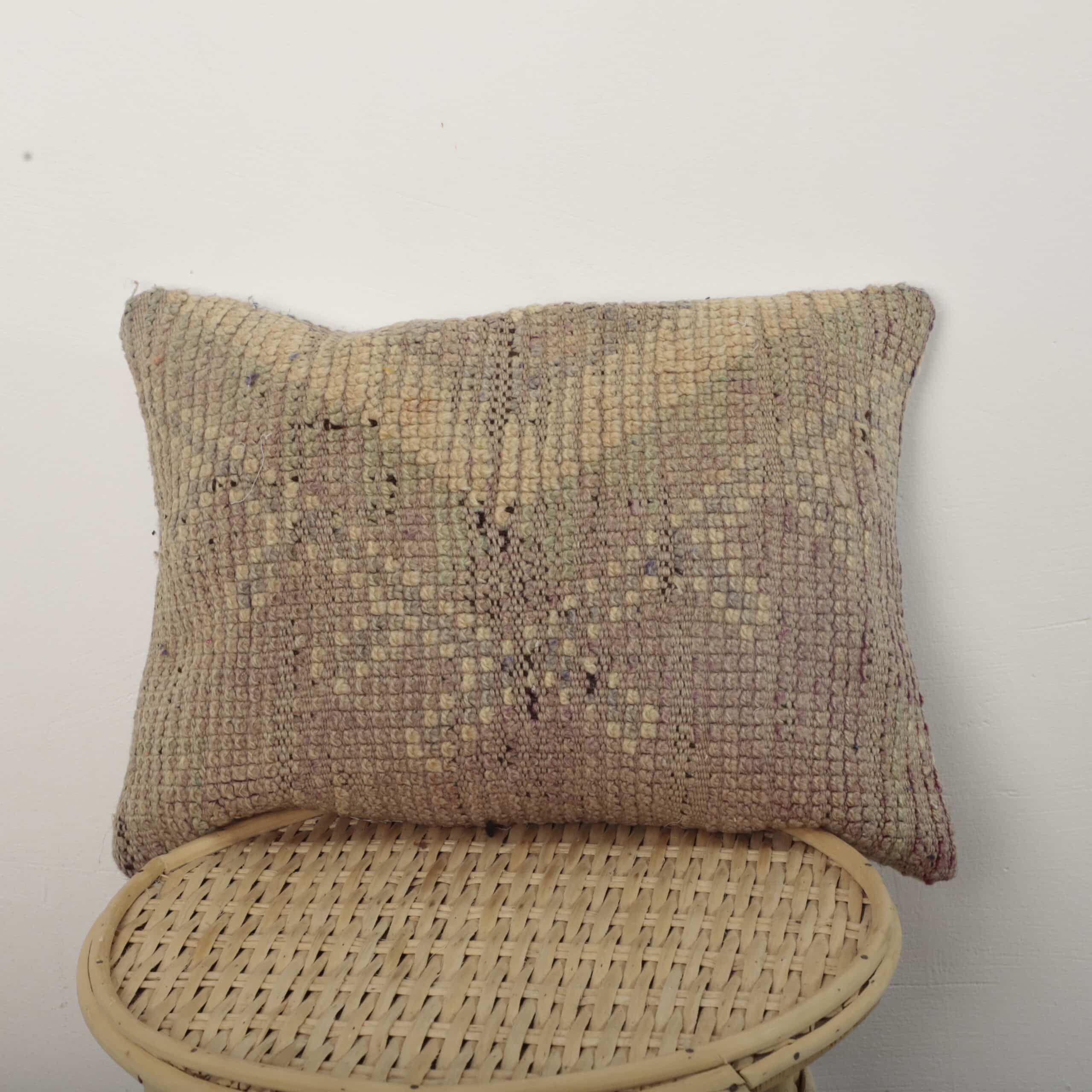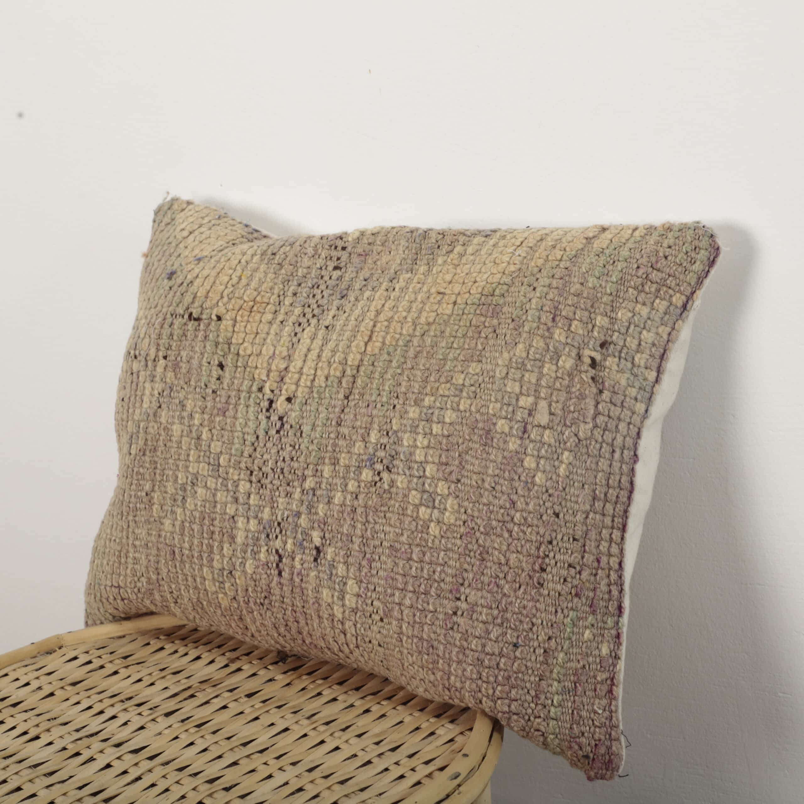 This rectangular Moroccan pillow features a dense woven texture that brings warmth and depth to any interior. Its neutral, weathered palette makes it easy to pair with modern, rustic, boho, and minimalist décor styles.