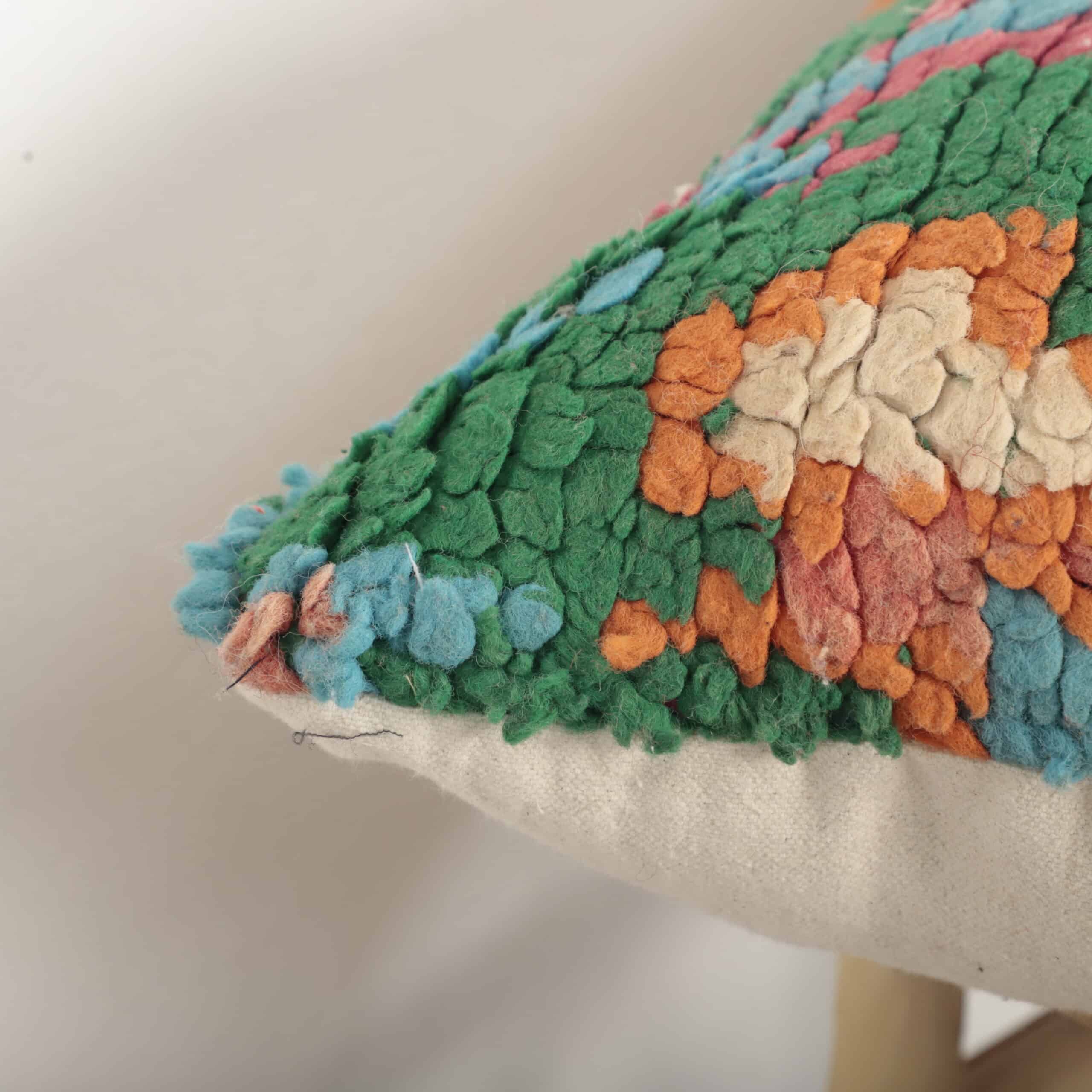 The vibrant palette and expressive tribal patterns make this Moroccan cushion a statement piece that complements boho, eclectic, rustic, and modern interiors alike.