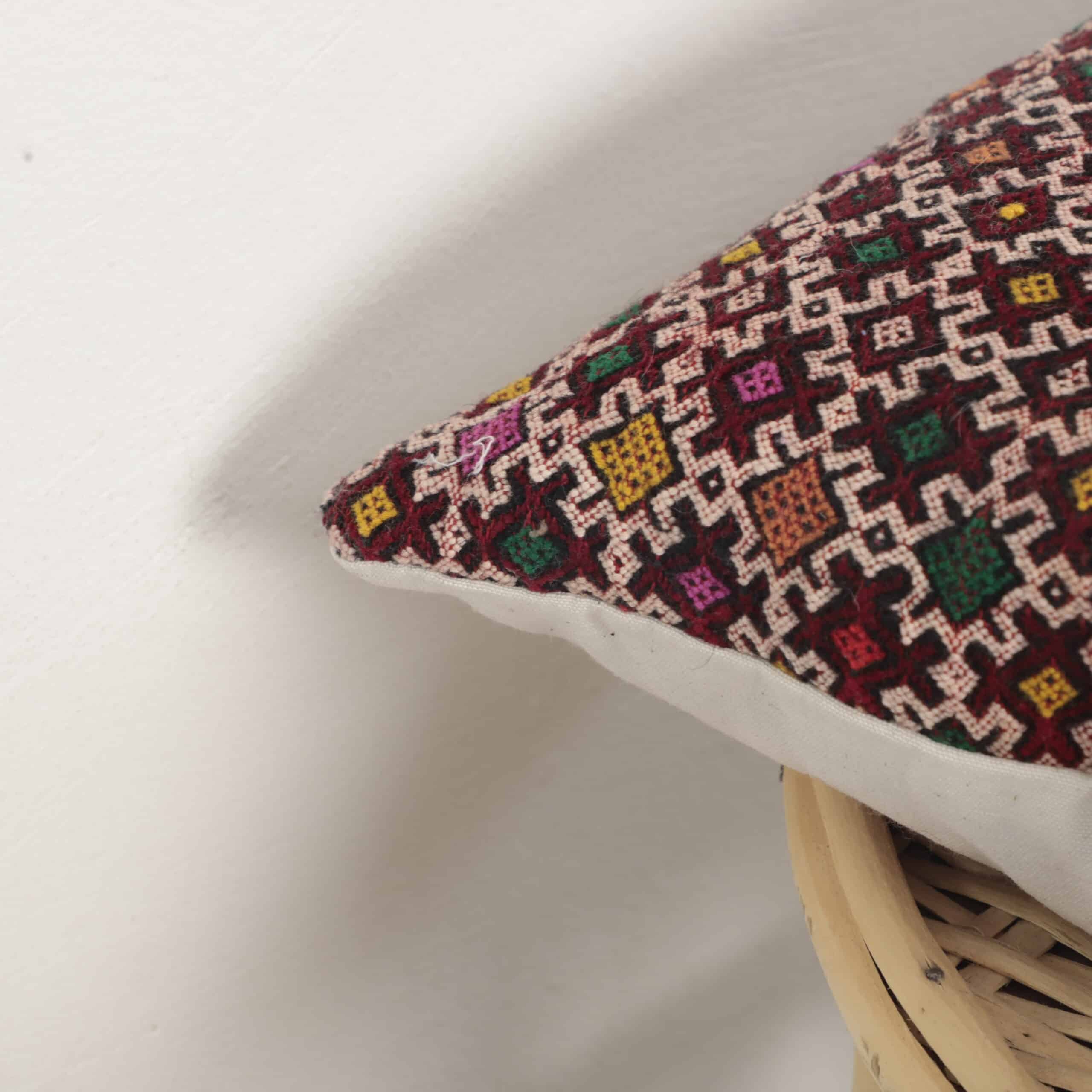 Vintage Moroccan Pillow – Handmade Berber Cushion 37×30 cm with Detailed Pattern